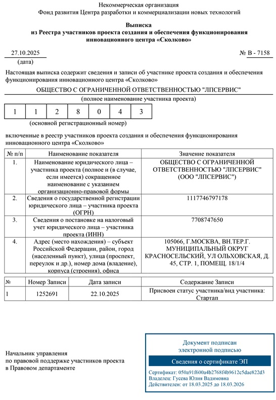 Новое достижение открывает для «ЛПСервис» масштабные перспективы. Оставаясь приверженной инновациям, компания продолжит активный вклад в технологическое развитие страны, укрепляя позиции на рынке передовых технологий и оказывая положительное влияние на развитие российской экономики.